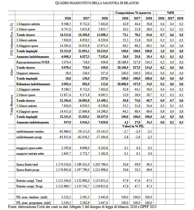Ufficio Parlamentare di Bilancio: https://www.upbilancio.it/wp-content/uploads/2025/11/Audizione-UPB-DDL-bilancio-2026.pdf