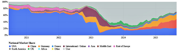 [7] Financial Times, 26.11.25, China leapfrogs US in global market for ‘open’ AI models - Beijing-backed technology gains ground as American giants hold fast to “closed” AI strategies (La Cina supera gli Stati Uniti nel mercato globale dei modelli di IA “aperti”: la tecnologia sostenuta da Pechino guadagna terreno mentre i giganti americani restano fedeli alle strategie di IA “chiuse).