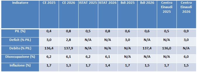 Quadro macroeconomico Italia: confronto previsioni 2025-2026