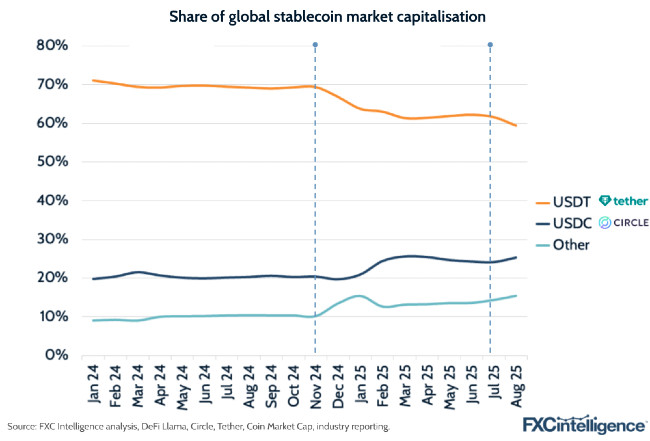 A settembre, nove banche europee tra cui UniCredit, ING, Banca Sella, KBC e Danske Bank hanno formato un consorzio nei Paesi Bassi per emettere una stablecoin conforme al regolamento europeo MiCAR, con lancio previsto per la seconda metà del 2026. Poche settimane dopo, un secondo consorzio guidato da BNP Paribas e composto da colossi come Goldman Sachs, Bank of America, Deutsche Bank, Citi e UBS ha annunciato l’esplorazione di stablecoin ancorate alle valute del G7. A completare il quadro, in Italia è stata presentata al Salone dei Pagamenti 2025 la stablecoin Eur-Bank, promossa da Bancomat insieme a Intesa Sanpaolo e Banco BPM.