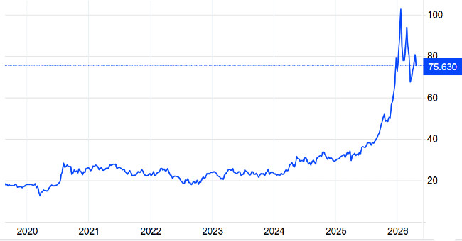 Questa volta, invece, la rottura rialzista di questa soglia critica ha generato una corsa verso l'alto dei prezzi senza precedenti. Le quotazioni, infatti, nel giro di una manciata di mesi sono più che raddoppiate, arrivando ad un massimo storico oltre quota 121 dollari in data 29 gennaio 2026.