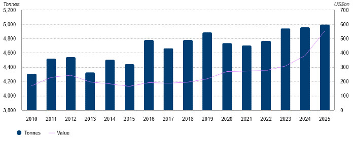 Per gli amanti delle statistiche, poi, possiamo segnalare come nel 2025 per la prima volta la domanda complessiva sia arrivata a superare quota 5.000 tonnellate (+1% rispetto al 2024).