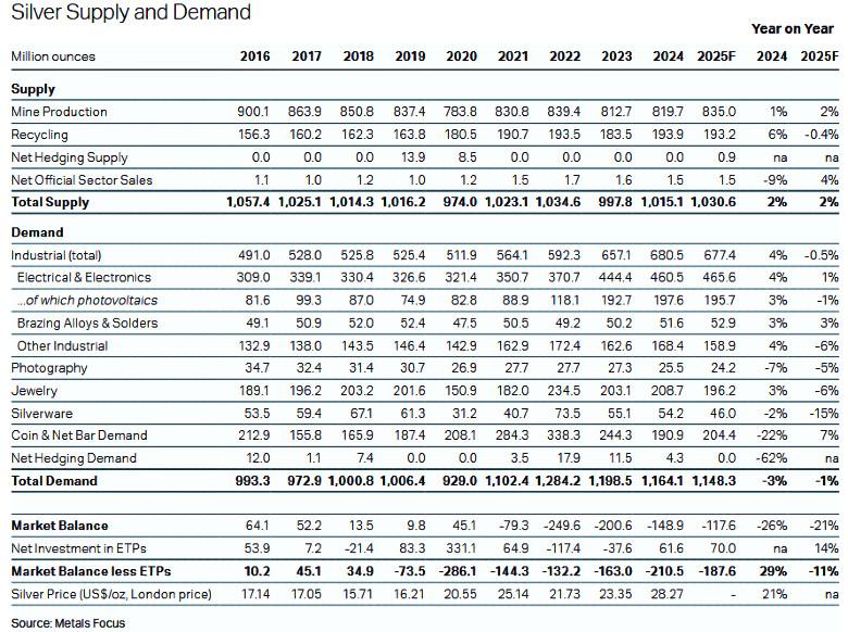 Offerta e domanda di argento nel 2025